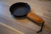 調理で熱くなった取っ手を握る際に高温から守ってくれる、ど渋なレザーカバーです。